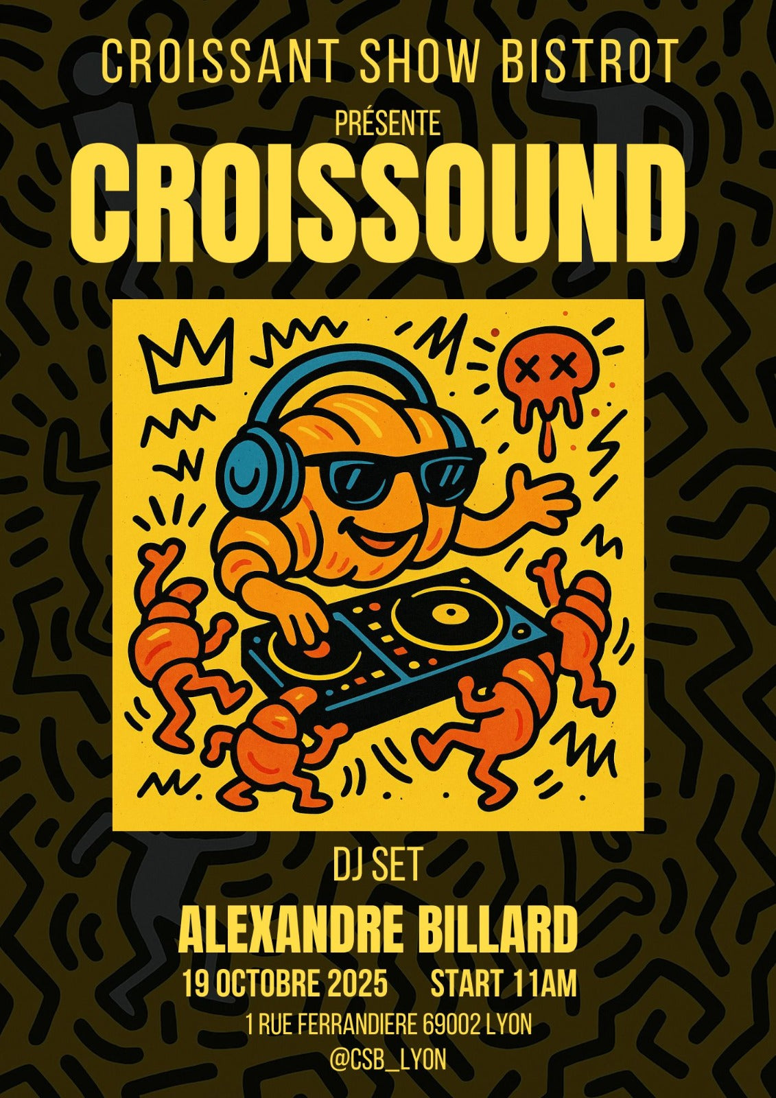 Découvrez Croissound, le brunch festif qui transformera vos dimanches au Croissant Show Bistrot à Lyon, tous les dimanches de 11h à 18h. Savourez un brunch généreux dans une ambiance chaleureuse tout en profitant du DJ set d’Alexandre Billard, qui distille des rythmes feel-good parfaits pour prolonger le week-end.